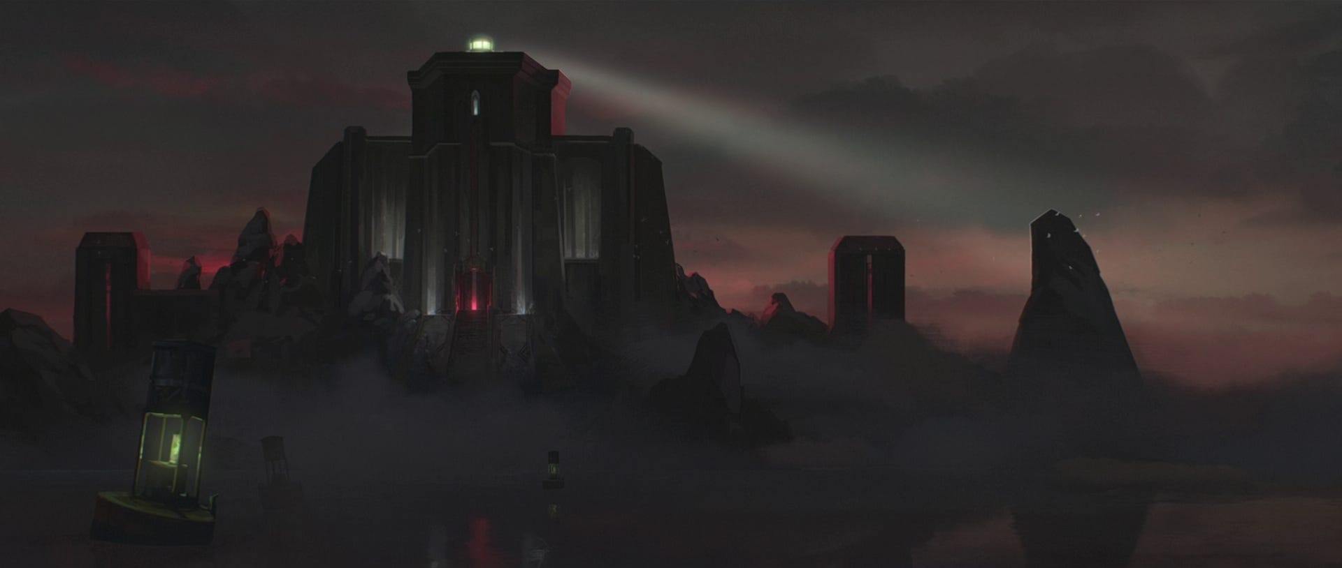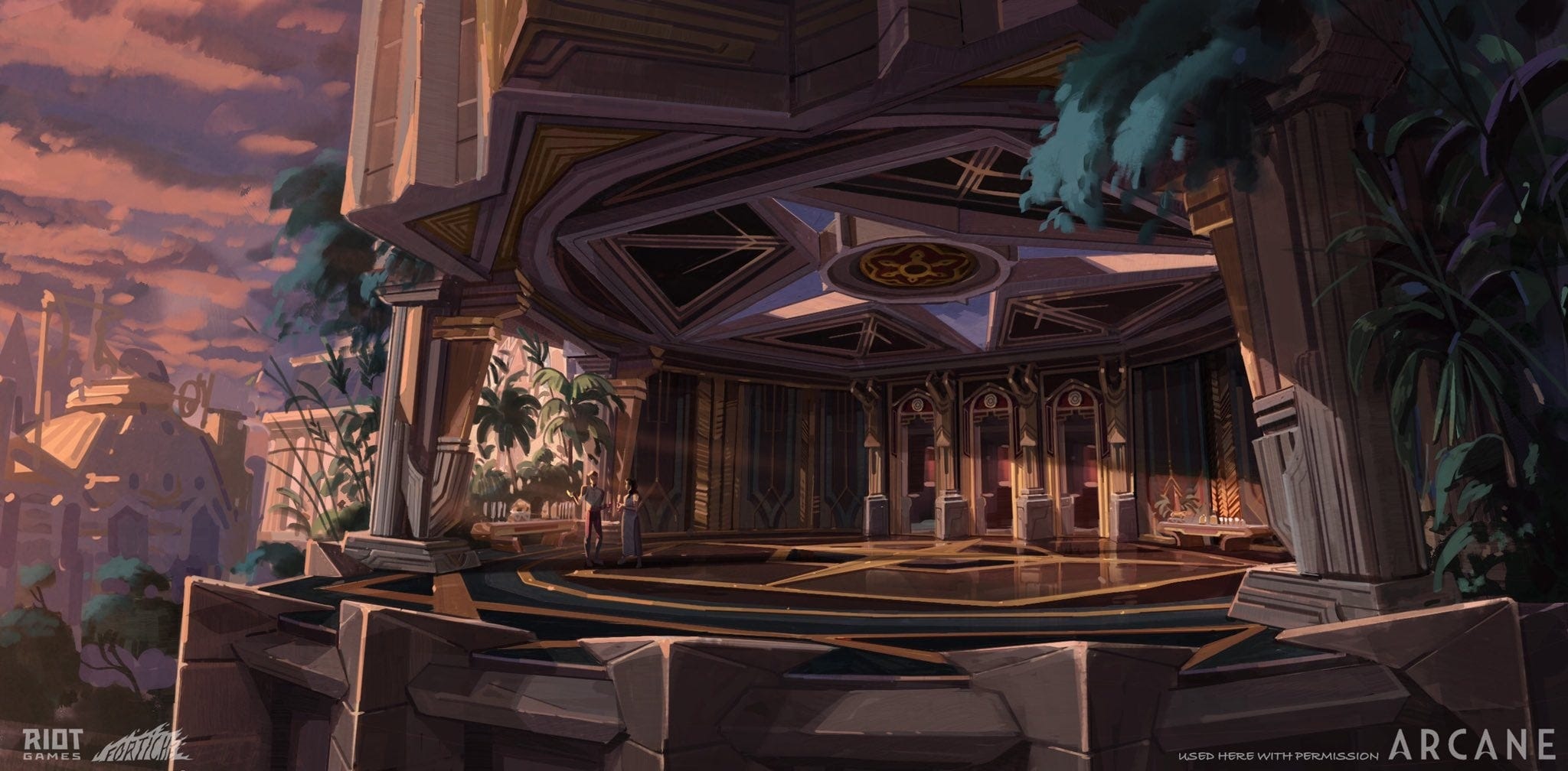 En la serie aparece brevemente este pabellón, propiedad de los Kiramman, donde Caitlyn tiene la conversación con Grayson que probablemente la lleva a unirse a las fuerzas de la ley. En esa escena se ven edificaciones al fondo, que he decido que sean parte de Piltover por la sencillez de desplazamiento entre ambas zonas. Como están separadas por el mar, he optado por situarlo al norte, fuera del núcleo urbano.